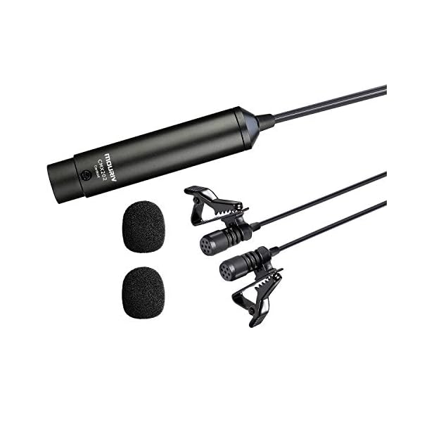 20ft Dual Head XLR Lavalier Microphone, MOURIV Cardioid Phantom Power Lapel Clip on Mic Interview Kit for Canon Sony Panasonic Camcorders Zoom H4n H5 H6 Tascam DR-40 DR-60D DR-70D DR-100 Recorders