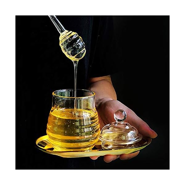 10 OZ Transparent Honey Jar with Dipper and Lid Glass Beehive Style Honey Pot