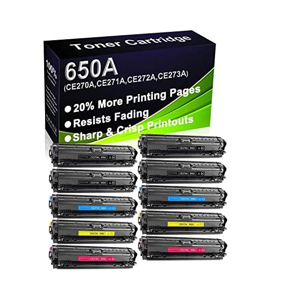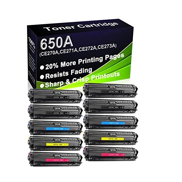 10-Pack (4BK+2C+2Y+2M) Compatible CP5525 CP5525dn CP5525n CP5525xh Laser Printer Toner Cartridge (High Capacity) Replacement for HP 650A (CE270A CE271A CE272A CE273A) Printer Toner Cartridge