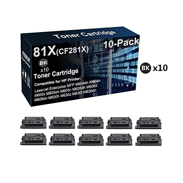 10-Pack Compatible 81X CF281X Laser Printer Toner Cartridge Used for HP LaserJet Enterprise MFP M604n M605dn M606dn Printer (Black, High Yield)
