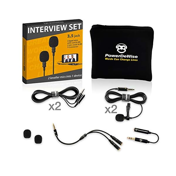 2 Lavalier Lapel Microphones Set for Dual Interview – Dual Lavalier Microphone – 2 Lavalier Microphone Set – Perfect as Blogging Vlogging Interview Microphone for iPhone 6, 7, 8, X