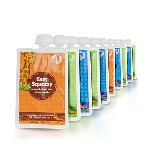 10 Pack Reusable Food Pouch, 170ml – Double Zipper Leak Proof, BPA Free – Dishwasher & Freezer Safe – Weaning Feeding Smoothies Yoghurt Puree Baby Food Storage – for Babies Toddlers Kids