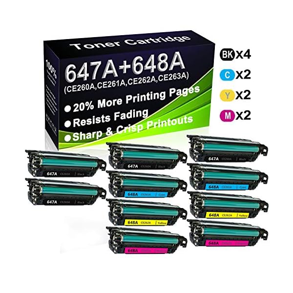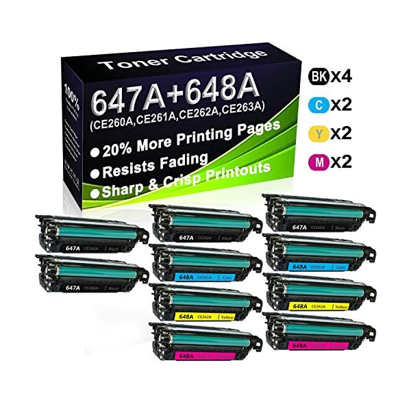 10-Pack (4BK+2C+2Y+2M) Compatible CM4540F CP4525XH CP4025DN CP4025 Laser Printer Toner Cartridge (High Capacity) Replacement for HP 647A 648A (CE260A CE261A CE262A CE263A) Printer Toner Cartridge