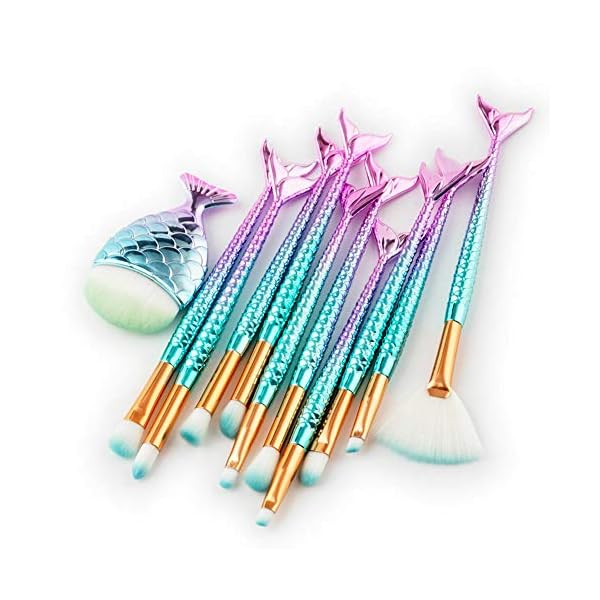 11PCS Mermaid Style Makeup Brushes Set Synthetic Foundation Brush Blending Face Powder Blush Concealers Eye Cosmetic…