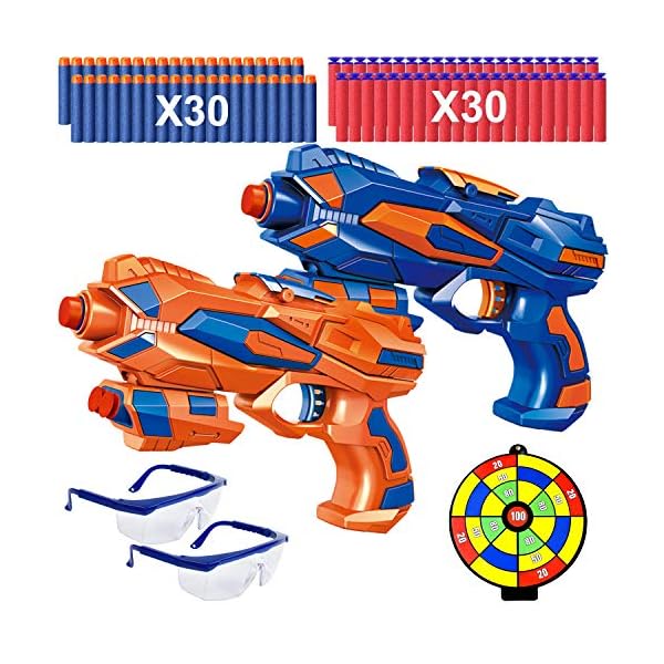 2 Pack Toy Guns for Boys, Blaster Guns with Shooting Target, 60 Soft Foam Refill Darts and 2 Safety Goggles, Toy Dart Guns for Kids Pistol Pellet Guns for Age 4 5 6 7 Year Old Birthday