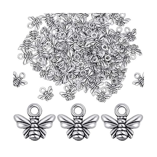 100 Pieces Jewelry Making Silver Charms Honeybee Earring Pendants Alloy Bee Insects Charms for Crafting Bracelet Necklace DIY Jewelry Making